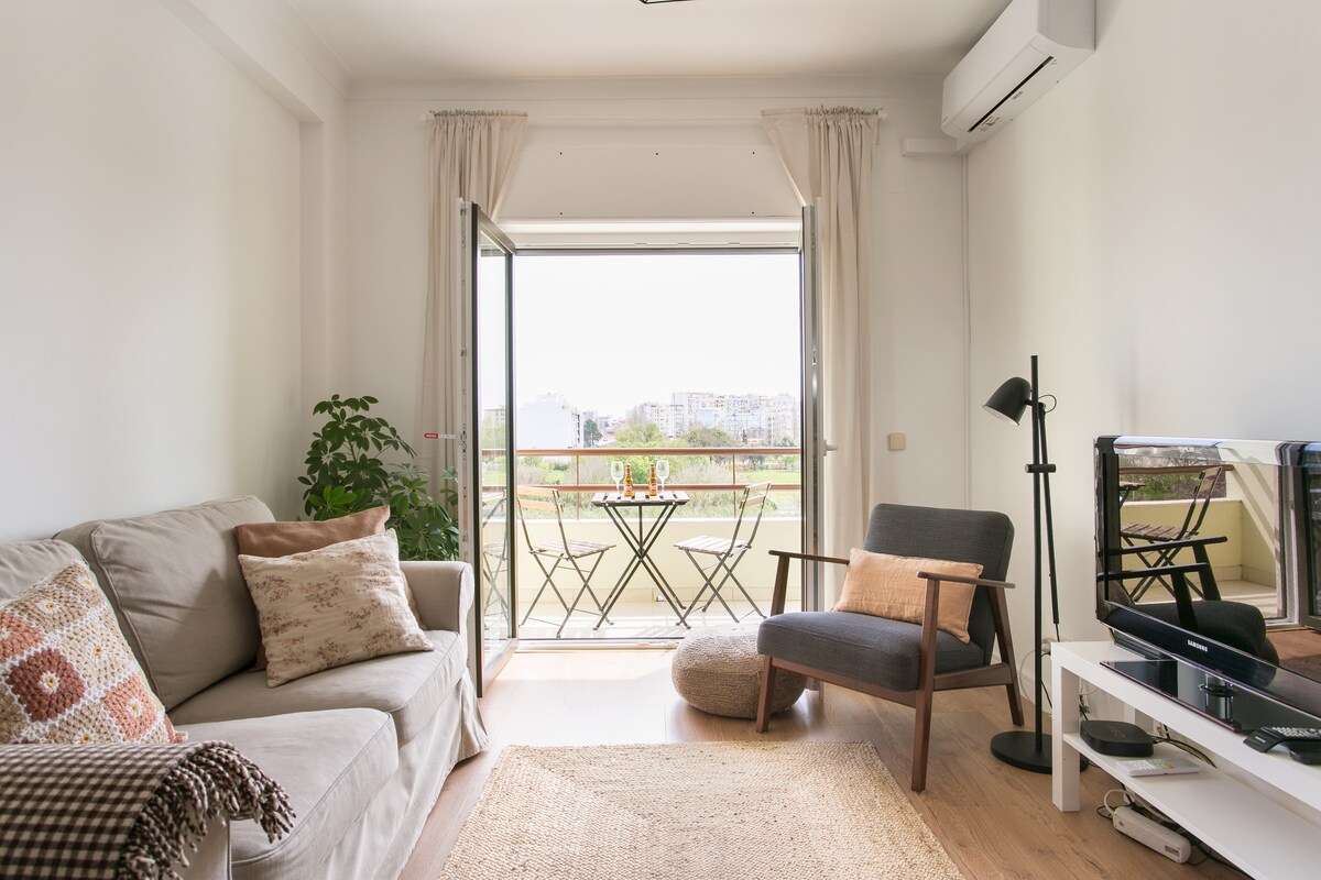 Renovated and fully equipped 1-bedroom apartment in a quiet residential area of Setúbal. We have AC in the living room/kitchen (unique space) and in the bedroom. The windows (double glazed) are new, allowing for heat/cold and noise insulation. The kitchen is new: refurbished in December 2023. Close to Supermarket, McDonalds, pastry shops and restaurants. It's easy, safe and free to park on the street. Fast Vodafone internet, ideal for home office.