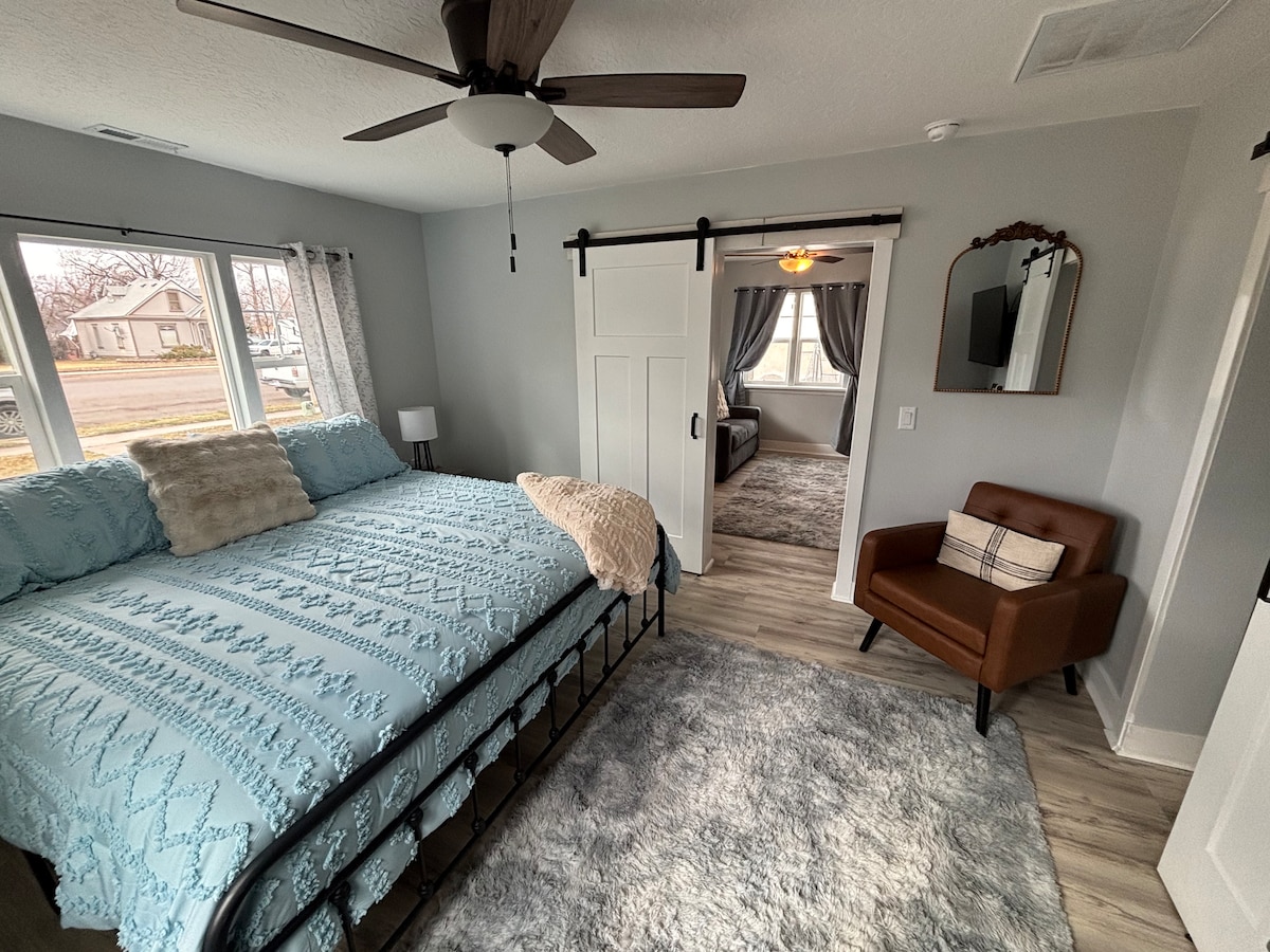 This fully remodeled home 1 block off Main Street Richfield is in walking distance to 2 parks, the city pool, restaurants and some of the best hiking, biking and running trails in Utah. Enjoy family time in the backyard with several gardens, porch, dining area, firepit, tree house and playground. Downstairs you'll find the master suite with a California King bed, walk-in closet and private bathroom. Upstairs there are two smaller bedrooms, one with 2 twin beds and the other with one.