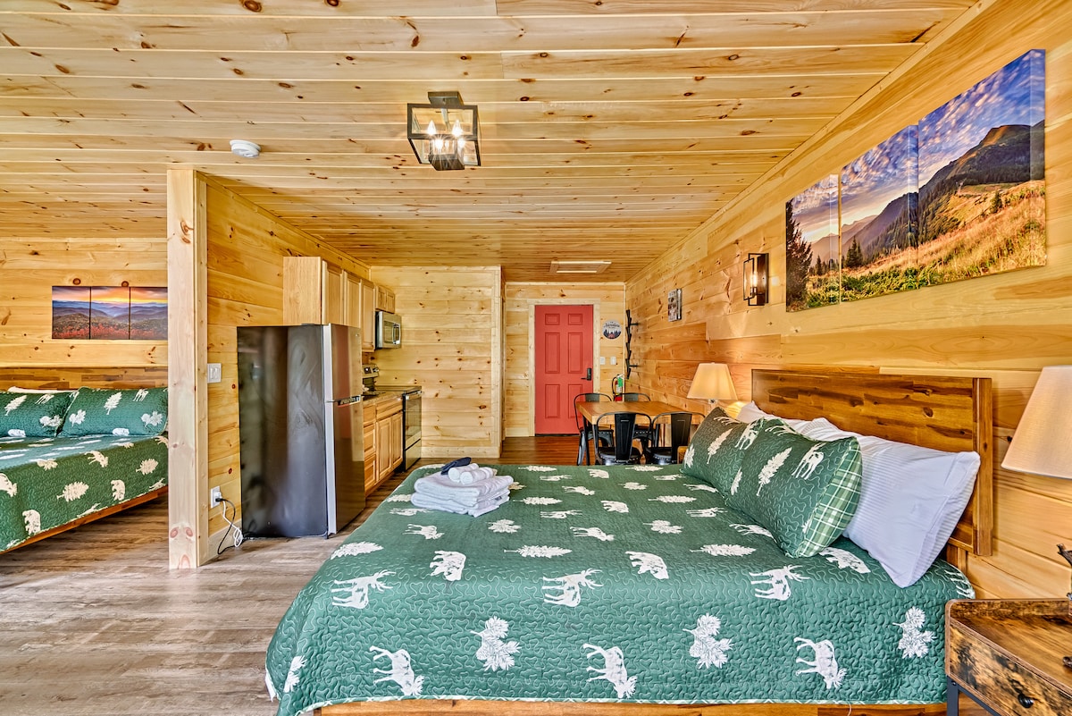 Enjoy a stay in our newly updated motel room, just 1 mile from downtown Gatlinburg and close to Pigeon Forge. Whether you’re hiking the Smoky Mountains or visiting local attractions like Dollywood, our location is ideal. The room features a private balcony, perfect for relaxing and taking in the views. Plus, with a trolley stop right across the street, exploring the area is a breeze. Inside, you’ll find comfortable bedding, a flat-screen TV, mini fridge, and coffee maker for added convenience.