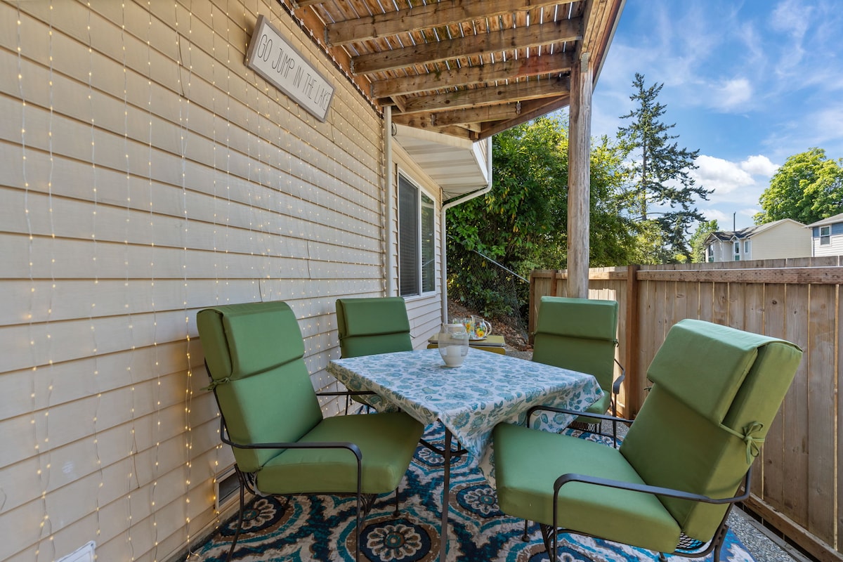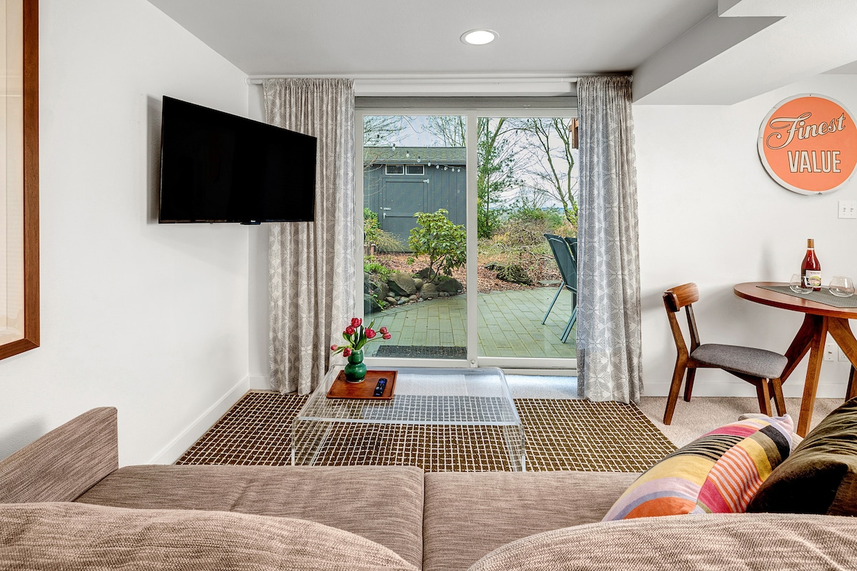 🏡 Welcome to your serene retreat in South Seattle! Nestled in a lush backyard filled with Pacific Northwest plants, this private studio offers comfort, calm, and convenience just south of the city center. You’ll enjoy your own entrance, private patio, and a clean, quiet space — perfect for solo travelers, couples, or anyone seeking a restful stay. You'll be a few blocks from Lake Washington, close to Seward Park, two blocks from public transit and a quick drive to the airport or downtown.