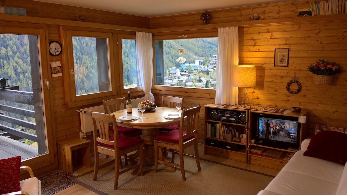 PLEASE READ TO THE END! Well-kept apartment, completely renovated, well-equipped, lots of charm, large balcony. Tranquility + 180° unobstructed view. No neighbors. "Carovilla" BUS stop at the door (@ "Carovilla" bus station). Parking 50 m away. FINAL CLEANING NOT INCLUDED. SHEETS /bath towels/dish towels provided FOR AN EXTRA CHARGE (extra-charge for bed sheets, towels). Self check-in (key in lockbox) WINTER: Ski area with guaranteed snow, doubled by the connection with Zinal.