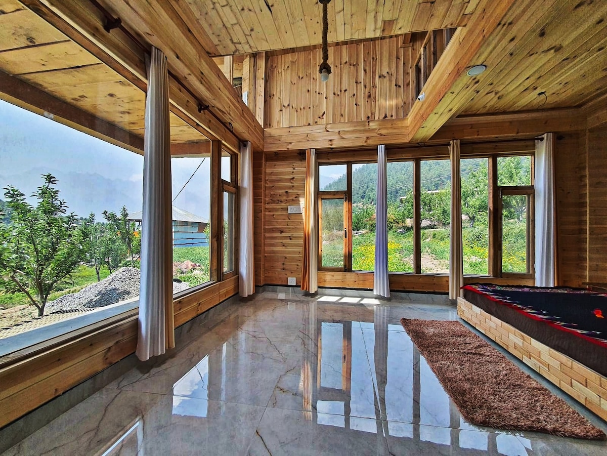 🌲 Escape to Tranquility in Sainj Valley Welcome to our cozy hand-crafted wooden cottage nestled among apple orchards and pine trees in the serene village of Manyashi, Sainj Valley. ⛰ What You'll Love: • Stunning views of snow-capped peaks from your private balcony • Fresh mountain air and peaceful surroundings — ideal for a digital detox or a romantic getaway • Beautiful wooden interiors with large windows and natural light • Wake up to the chirping of birds and fall asleep under a starry sky