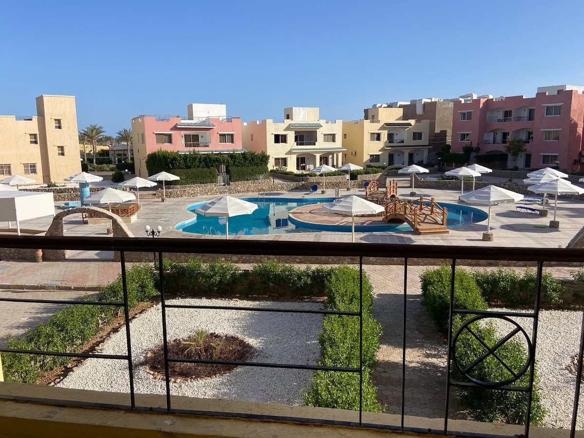 lovely large studio, fully furnished in a modern style. at the new zone of the Delta Resort, where they had restaurant service. The resort has over 12 swimming pools, our building 181, the building in front of the hotel pool. takes at least 5 minutes by taxi or public mini bus to reach any part of the city, and all beaches Restaurants, bars, supermarkets, pharmacy, kids' club, 10 minutes to the Convention Centre. 5 minutes to the Old Market, El Fanar Beach, Farsha Cafe and Naama Bay