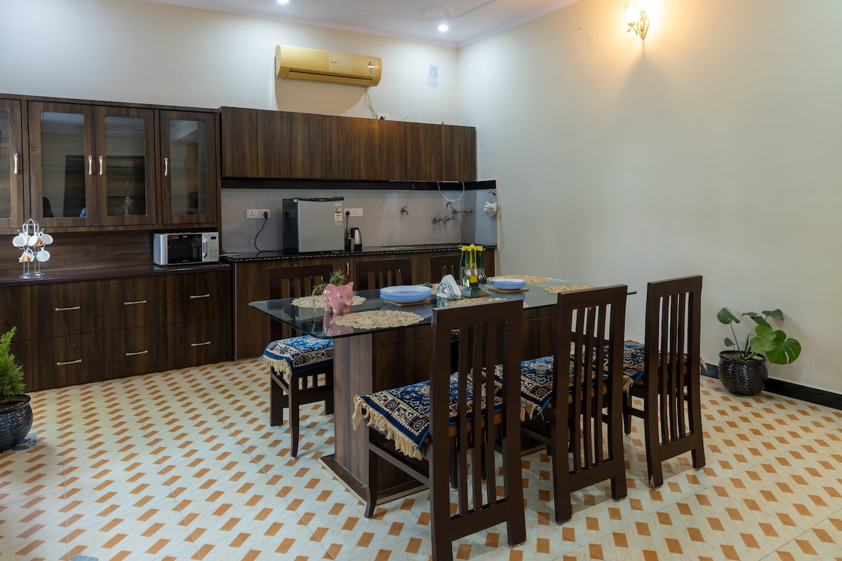 Escape to Gulab Vatika 2BHK – a peaceful villa surrounded by lush greenery. Perfect for families or friends, this spacious stay offers two cozy bedrooms, a stylish living area, fully equipped kitchen, and a beautiful lawn for relaxation. Enjoy modern amenities like WiFi, AC, and smart TV. Located in a calm neighborhood, yet close to city attractions. Your serene getaway awaits!