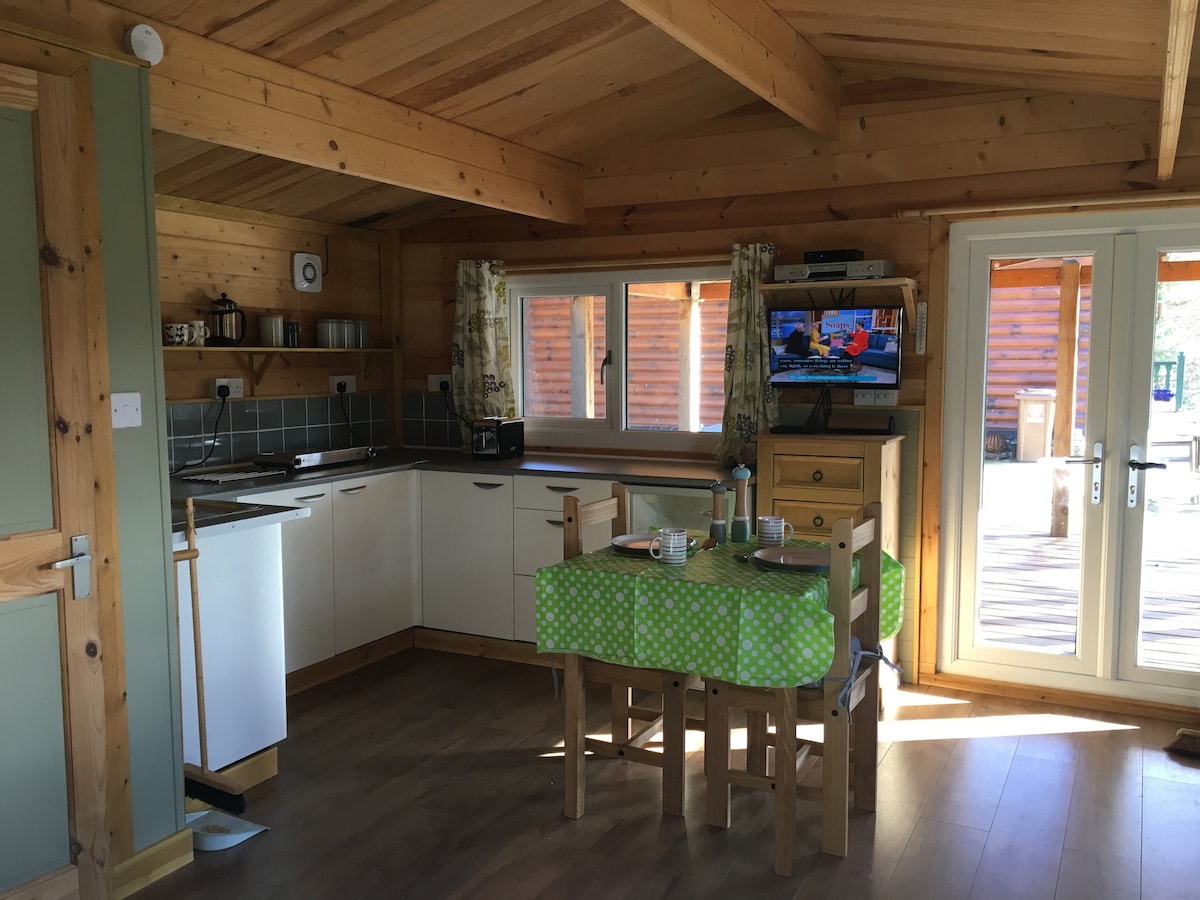 The Cabin is a self catering one room chalet that contains 2 single beds, table, chairs, armchairs and a kitchen. An enclosed bathroom with shower, toilet and sink is included. Water is provided by the Cromdale hills via filtration system. The Cabin is fully insulated and heated for a cosy environment. Entertainment consists of TV, video & bluetooth boom bar speaker. Placement of The Cabin is close to the back of the house which provides privacy for guests. WiFi is available.