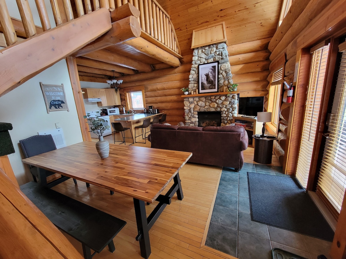 Experience the rustic elegance of this handcrafted log home, Grey Owl Lodge. Take in the fantastic mountain views and breathtaking countryside. Soak in the relaxing hot tub after a day of exploring in the mountains. A magical place to spend a weekend or a week of relaxing and adventuring in the surrounding National Parks, 4 of them are less than an hours drive from the lodge. Your only regret will be that you didn't stay longer.