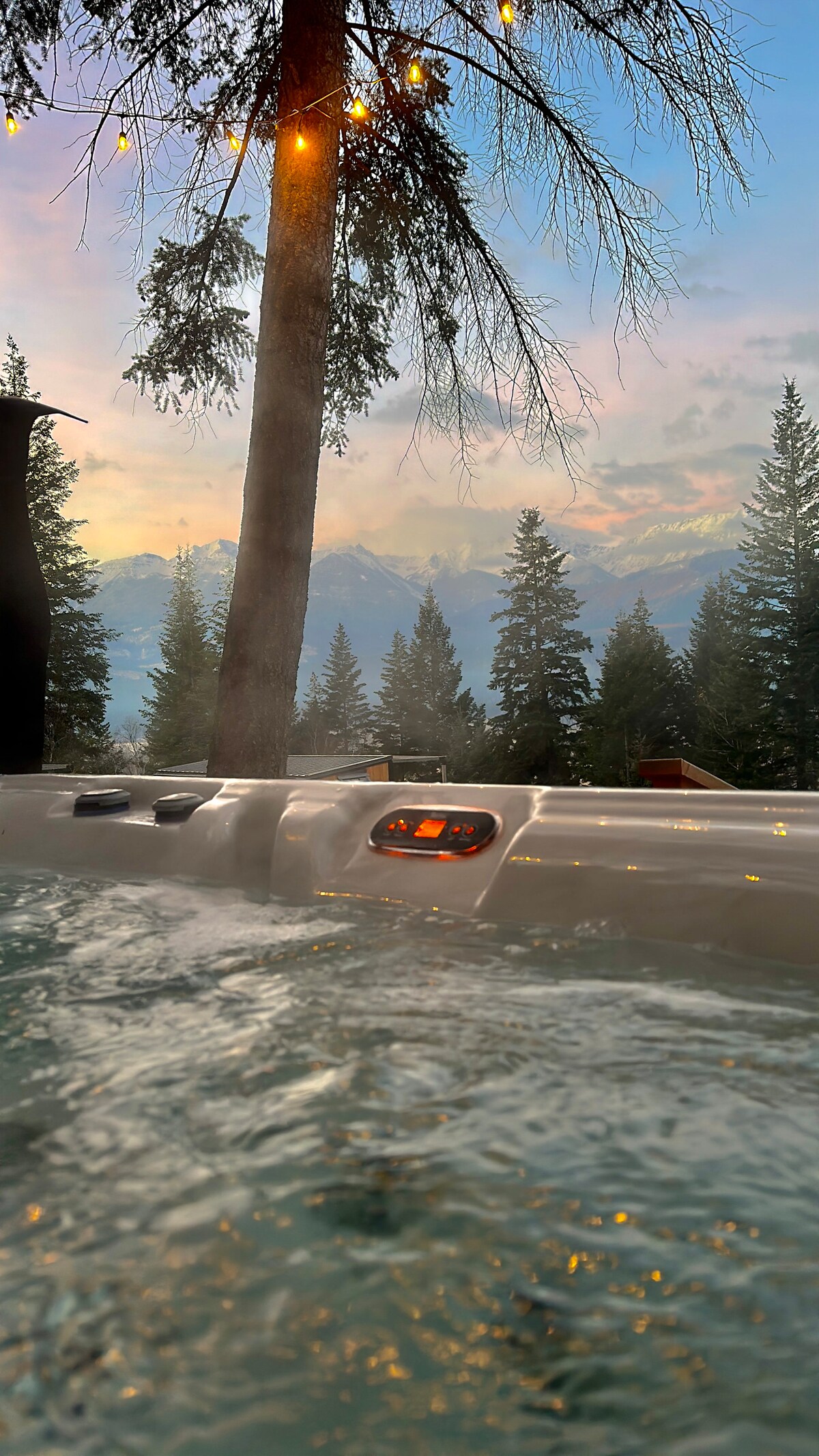 Escape to Mountain Bliss Unwind in a cozy cabin nestled amongst the trees. Soak in breathtaking mountain views from the deck, relax in the hot tub, or unwind in the unique treehouse sauna. Feel a world away, yet conveniently located: -6 minutes from downtown Golden -20 minutes from Kicking Horse ski resort -Day trips to Yoho, Glacier, Banff, and Bugaboo National Parks Features: King bed and comfy couch Full kitchen to whip up delicious meals Spacious deck Hot tub and sauna Fast WiFi BBQ