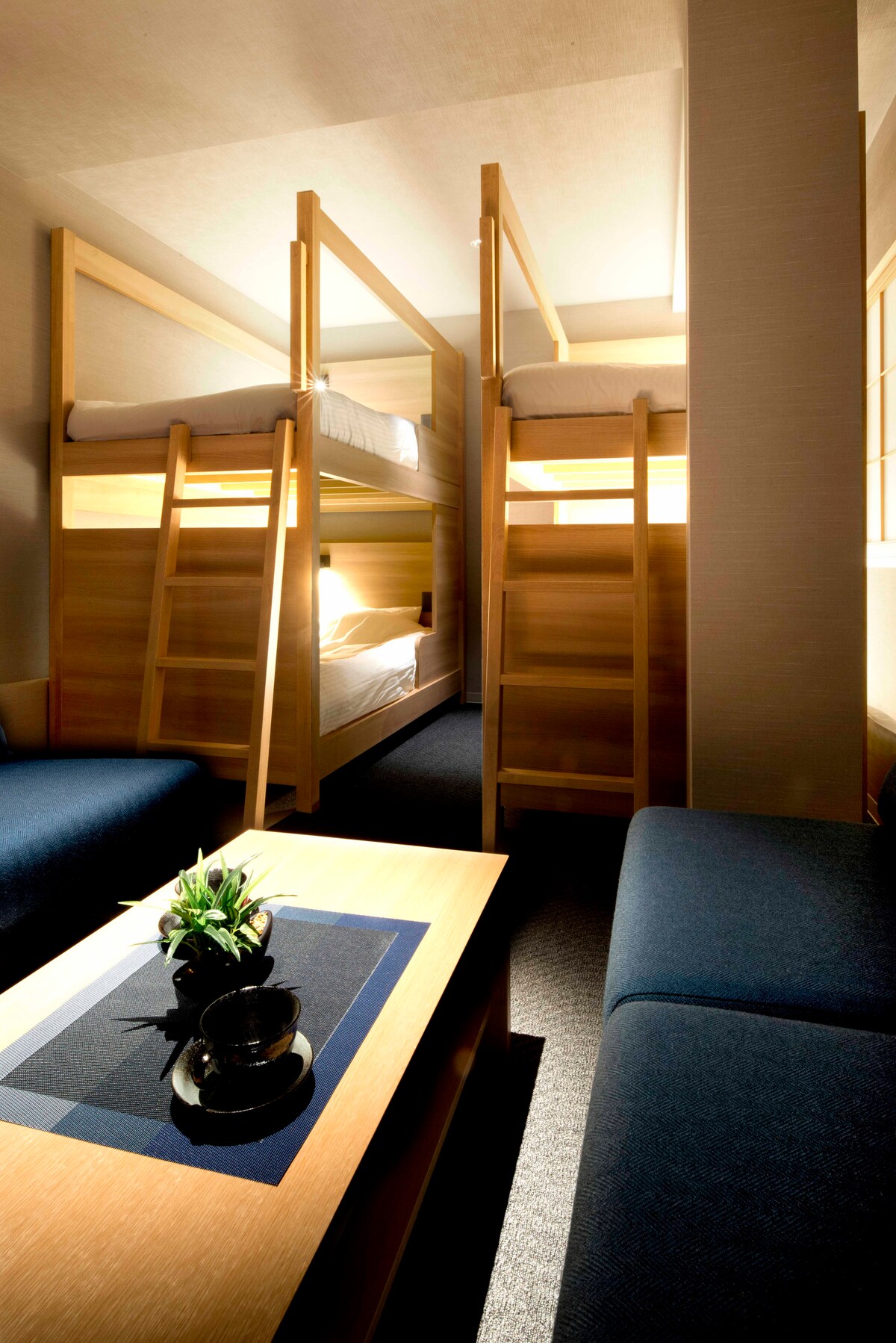 ~ Art connects people ~ Alphabed Inn Takamatsu Ekimae is perfect as a base for travel in Setouchi The ■lobby features a mural of the highlights of the Setouchi Triennale. This space was created in collaboration with local artists. The lobby also has a computer counter, library, and common kitchen. We provide a space where you can "meet people while traveling" and "experience art while traveling". The ■interior is designed with Japanese elements. Each room is decorated with indigo accent crosses inspired by the Seto Inland Sea and art by Isamu Noguchi, who has deep ties to Kagawa. You can experience Kagawa in your room... The ■guest room room number sign is expressed by shadows from lighting, representing an artistic environment. The architectural designer's attention to detail can be seen in the small details. Please come to the hotel and discover the small details. ■There are 11 rooms in total, with 10 different layouts. We have a variety of rooms, such as rooms with raised flooring and rooms with bunk beds, that can be used for a variety of travel styles.