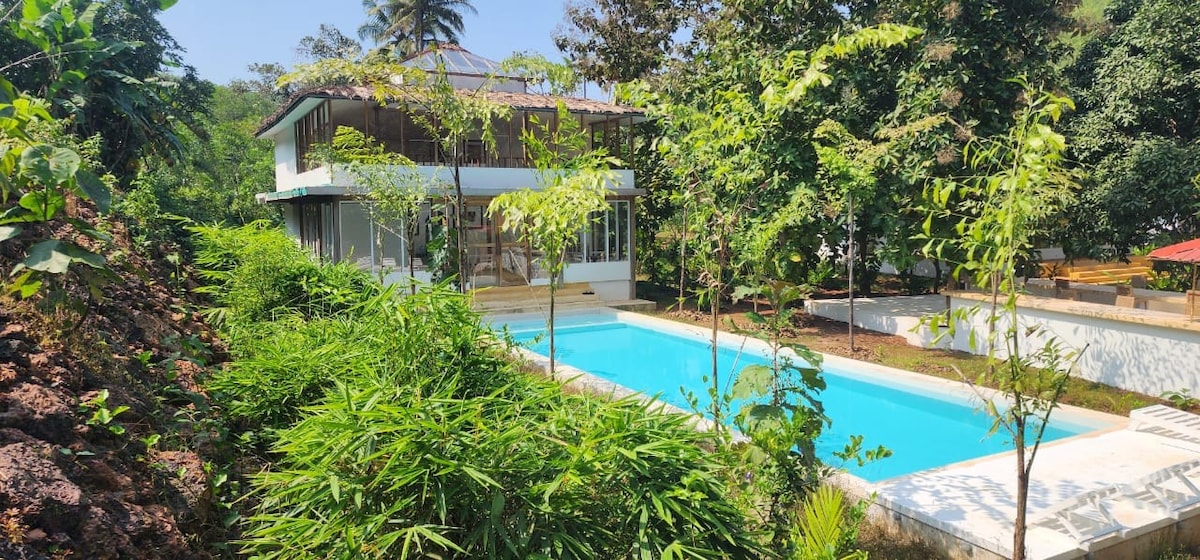 Tucked within a 4.5-acre cashew plantation on a sprawling 50-acre family-run farm, Poolside Paradise offers the perfect blend of rustic charm and modern comfort. Featuring two air-conditioned cottages connected by a private pool and surrounded by the scenic beauty of the Western Ghats, this serene retreat is ideal for all age groups Enjoy refreshing swims, cozy evenings by the campfire or enjoy the nature that surrounds you. Poolside Paradise promises a unique and memorable stay.