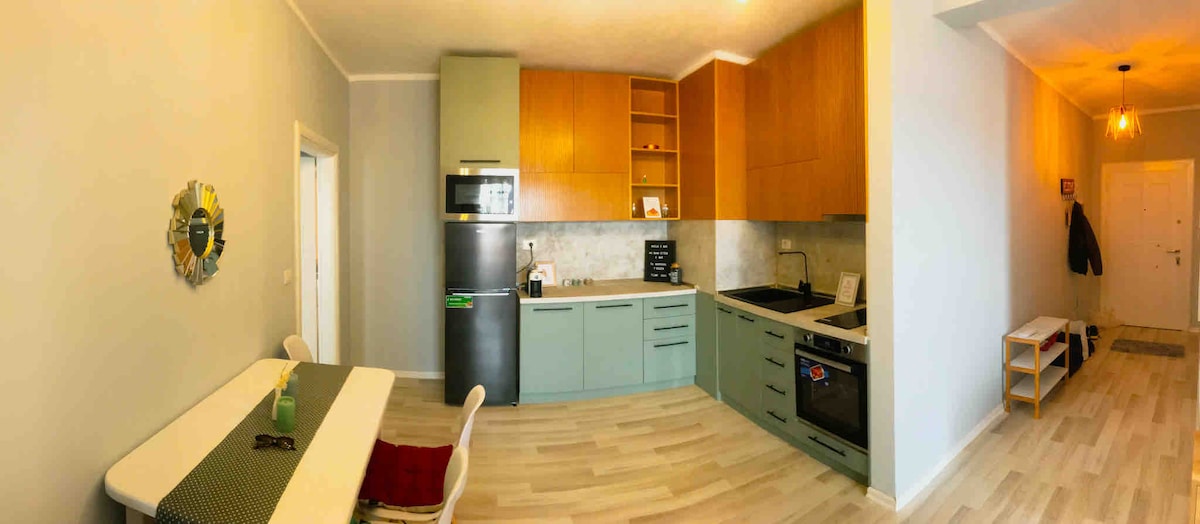 Do you want to spend a night in Shkoder like a true shkodran? We have the perfect pick for you! This apartment is located in the heart of the city, the pedestrian street. The neighborhood, "Gjuhadol" is one of the oldest, safest and the definitely the most vivid neighborhood in Shkoder. The whole building is brand new and as for the appartment, we took care of every detail to make you feel like home.