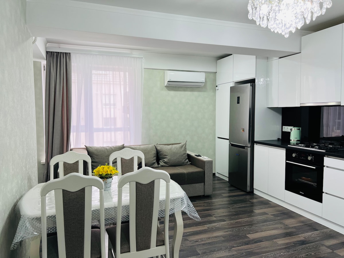 Welcome to our freshly renovated apartment in the heart of Chișinău! Warm light, quiet green courtyard, fully equipped kitchen, and thoughtful details — everything is ready for your stay. Perfect for solo travelers, couples, or digital nomads looking for a peaceful and stylish home.