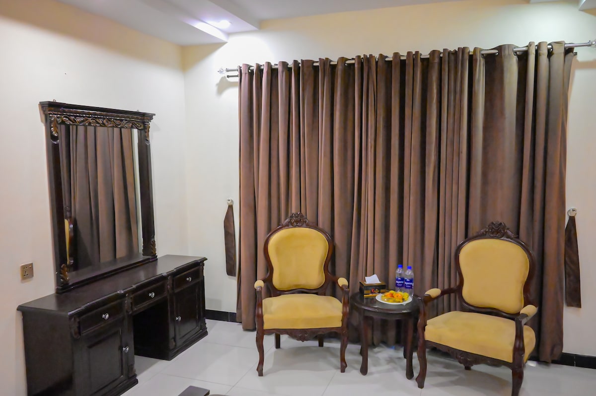 This stylish place is close to must-see destinations like Iqbal house, Clock Tower and Citi-Housing Fountain Show. We serve our Guest a Complimentary breakfast everyday, also we do cleaning of the unit everyday. We also have a dining hall where your friends can visit, relax and dine with you. The unit is few minutes from Small Industrial Zone and Number of Factories, which makes it ideal for business travellers looking to procure from Surgical, Sports, Textile and Tanneries Industry.