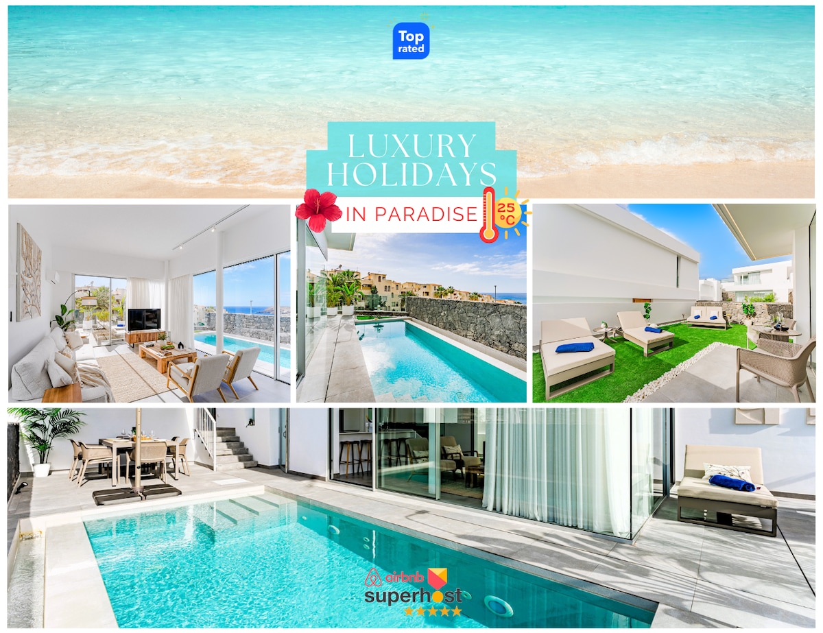 Un alojamiento único en su diseño, vistas al océano y corazón turístico - Playa de Las Americas. En una prestigiosa zona - Caldera Del Rey, cerca de Siam Park y CC Siam Moll. 2 zonas de descanso- 1) grande soleada terraza con vistas al océano 2) encantador jardín tropical con piscina. 3 dobles dormitorios con 3 baños completos 1 estudio entero con cocina y baño. Ven a pasar tus perfectas vacaciones en un espacio idílico para tus mejores sensaciones.