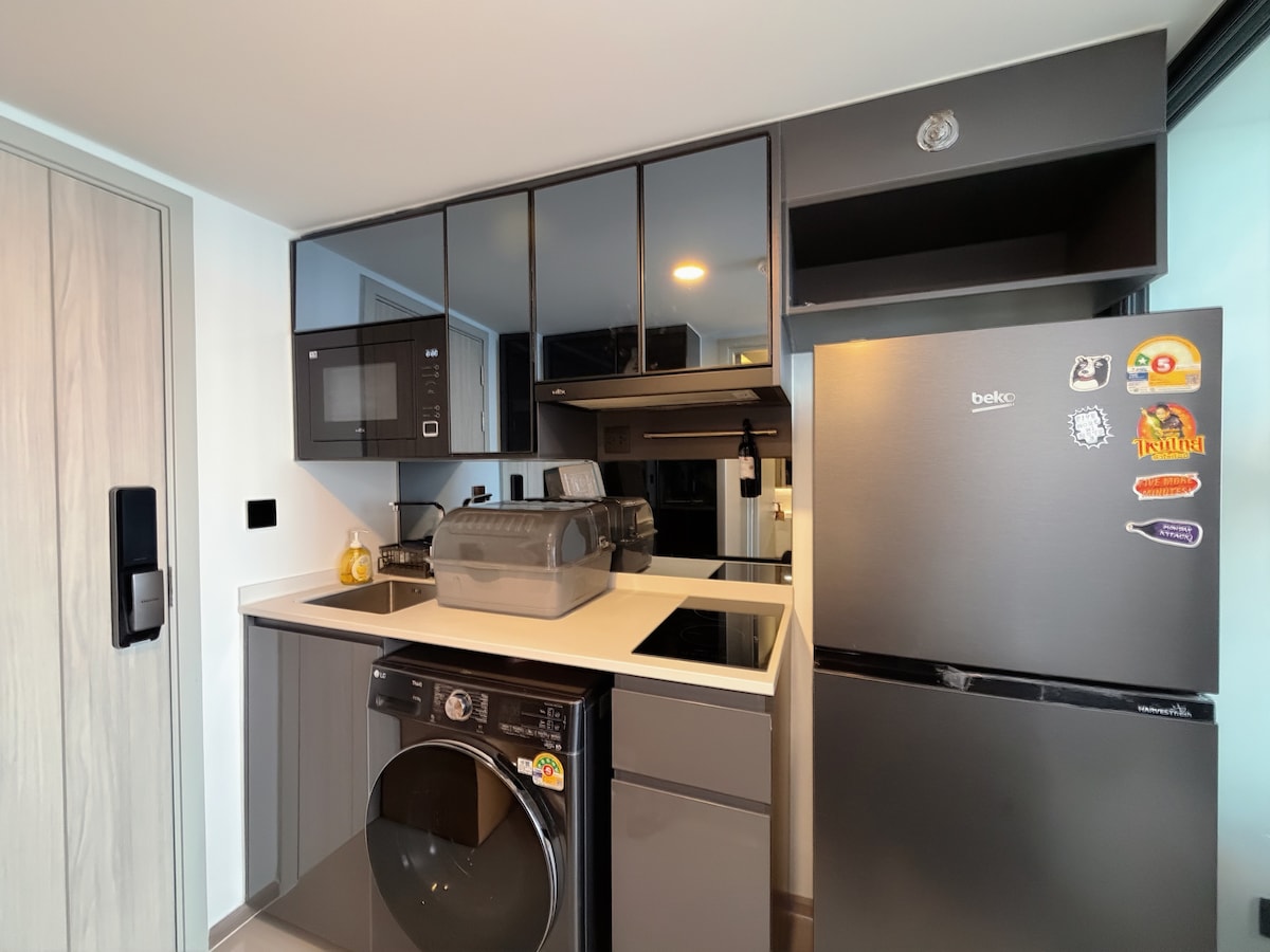 You are welcome to choose and stay in my apartment and I hope you have a great trip to Thailand. The house is located in RAMA9, LOFT apartment delivered in 2024.The room is approximately 40 square meters in size and includes one bedroom, a living and dining room, a kitchen, and a bathroom. It can easily accommodate 3 adults. (Tip: For bookings with 1–2 guests, by default, only the bed in the bedroom will be provided. If you need an additional sofa bed, please enter 3 guests when booking and contact us after booking to let us know. We will arrange for our staff to make the sofa bed before your check-in.) The price of the reservation includes the use of the entire property, as well as the cost of the fitness center, the swimming pool, and the co-working space.