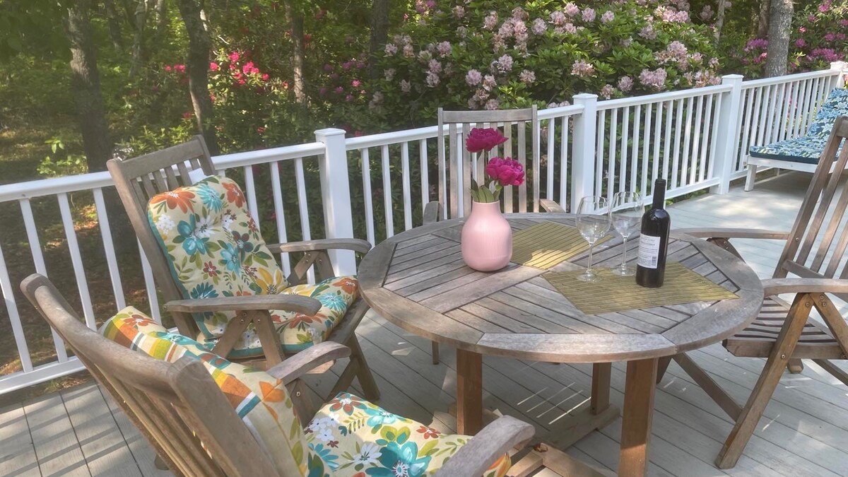 A Tranquil Escape in New Seabury 5-Bedroom Cape Cod Home with Garden Oasis Inspired by Butchart Gardens Welcome to your year-round retreat, tucked away in a private setting among towering oaks in the heart of New Seabury, Cape Cod. This beautifully maintained 5-bedroom home offers the perfect blend of coastal charm and modern comfort. Step outside into your own slice of paradise—a professionally designed garden inspired by the world-famous Butchart Gardens of Victoria, British Columbia.