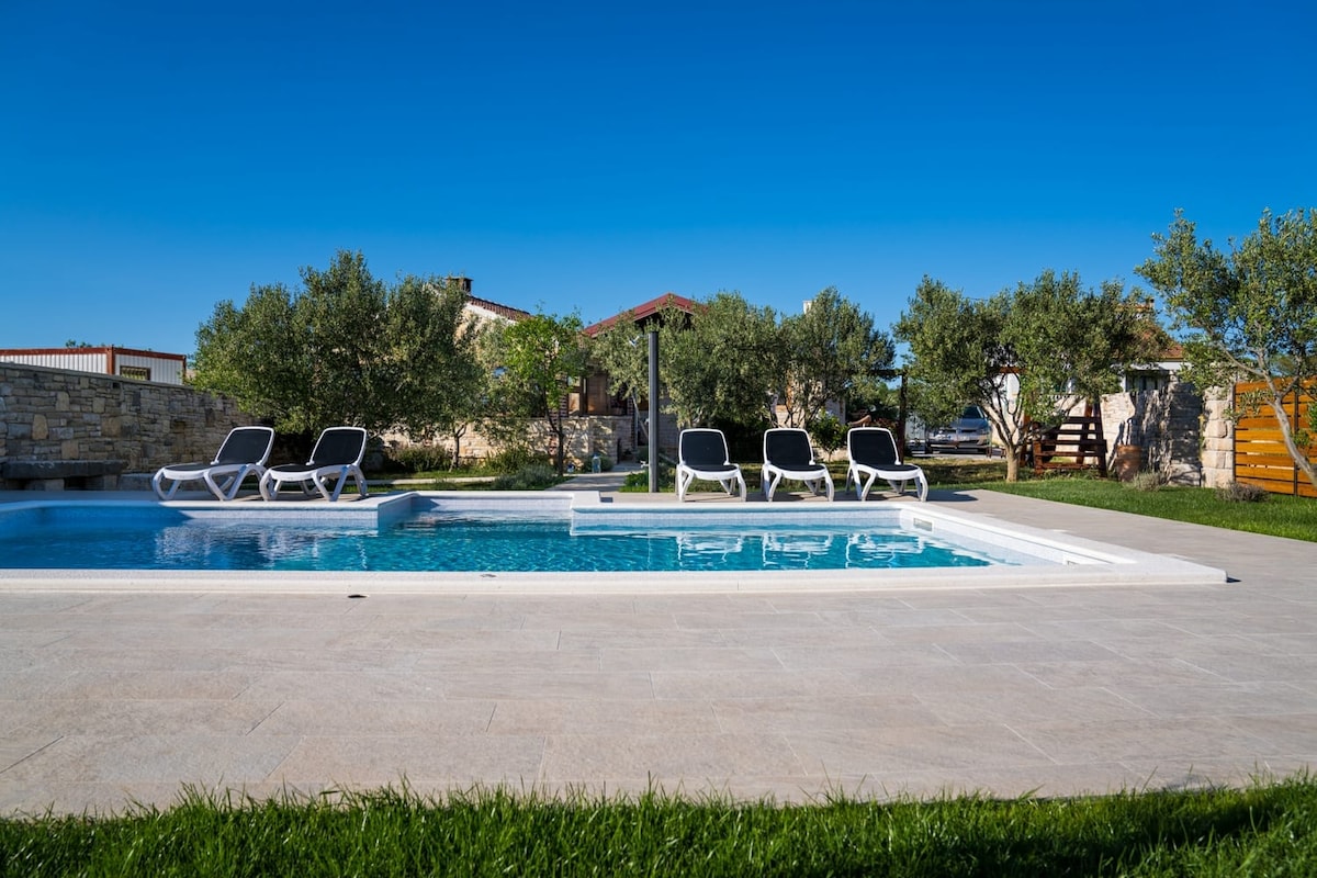 Holiday house Jona is located in a small village in the heart of "Ravni Kotari". The house is located on a 7000 square meter ranch that has a large guest-only swimming pool and is surrounded by vineyards and various fruit trees that guests have at their disposal. The house is ideal for a complete dream vacation where you can afford complete peace of mind. House Jona is new and fully equipped with dishwasher,washing machine,coffee aparat,grill,air conditioning,wi-fi internet, ultra-slim TV, etc.