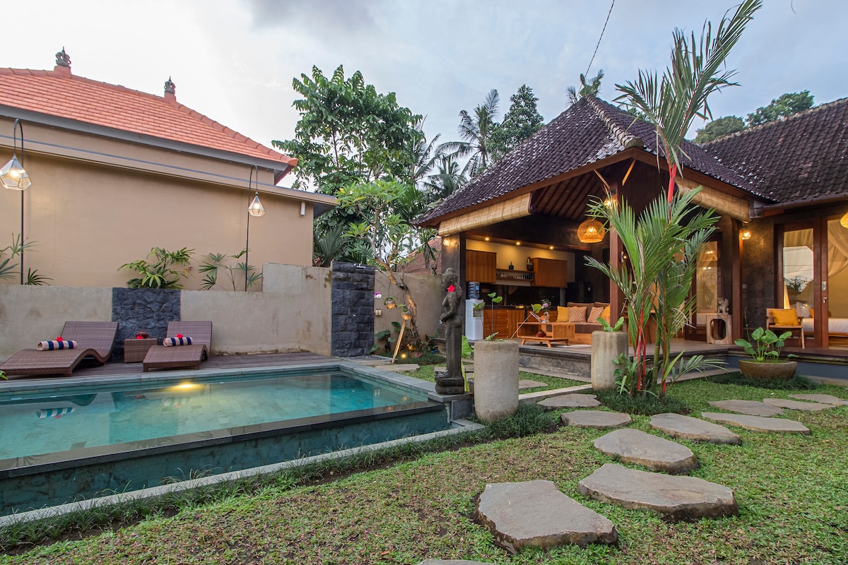 Properti mewah ini terletak di utara ubud 10 menit dari pusat ubud, 15 menit dengan cretya Ubud dengan butik,yoga,kafe,restoran,studio yoga,dan banyak atraksi lokal yang semarak.sarapan gratis hanya 1 kali selama masa inap, minimal masainap 2 hari.tetapi anda dipersilakan untuk menggunakan dapur lengkap kami dan mempersiapkan dapur anda sendiri yang bisa ditawarkan Ubud seperti restoran kelas dunia dan budaya yang lebih besar dapat memberi anda pengalaman menginap terbaik di Bali.