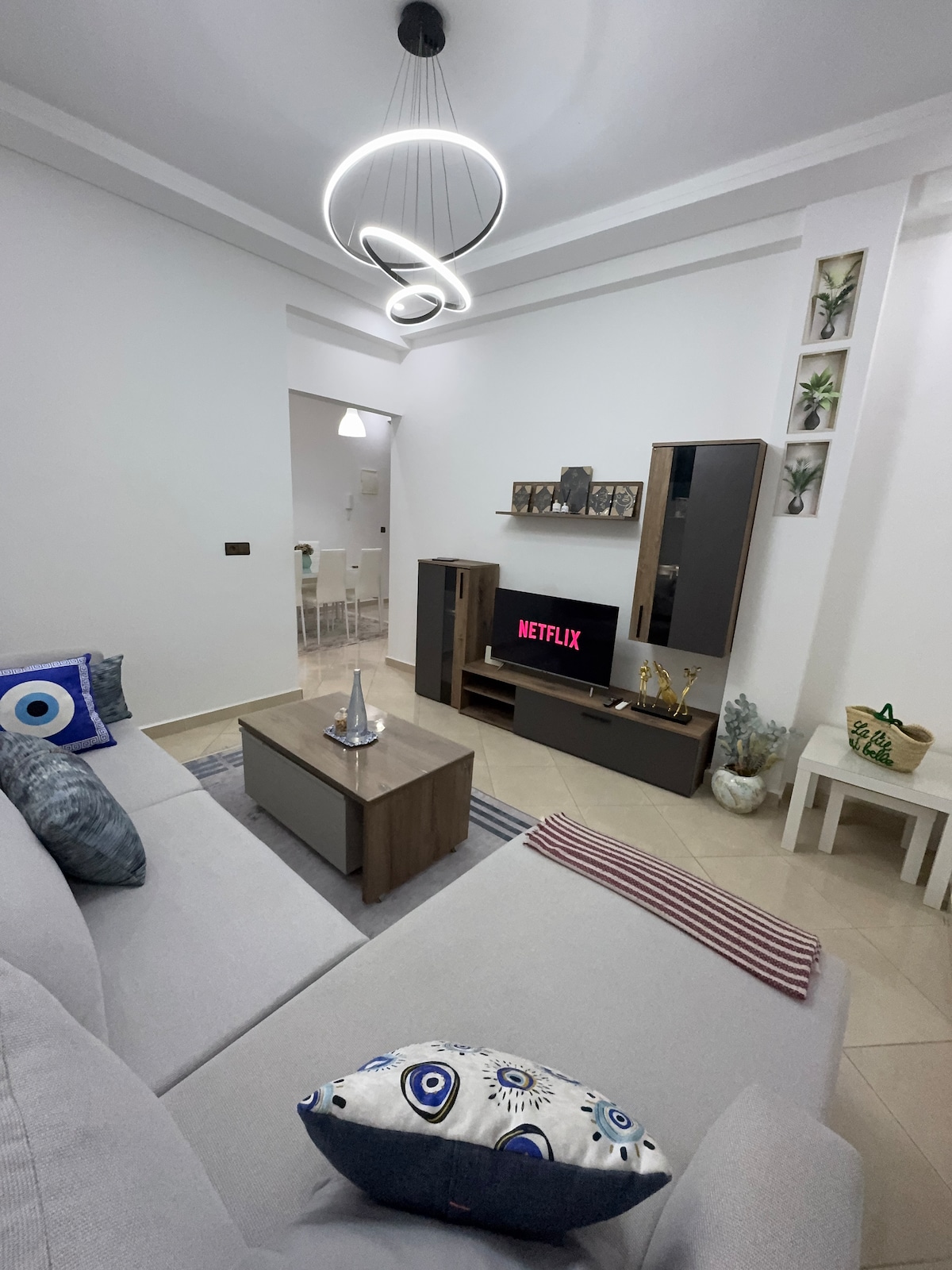(clarification for our valued customers) - This apartment is located on the Red Chaussée, its equipment is as follows: - 1 bedroom (1 double bed + 2 single beds) - TV - wall fan - refrigerator - equipped kitchen - clean sheets - sleeping pillows - bath towels - hair dryer - European toilet - shower gel - hand soap - toilet paper - fiber optic WiFi - terrace in front of the apartment - water filtered by softener - paid restaurant