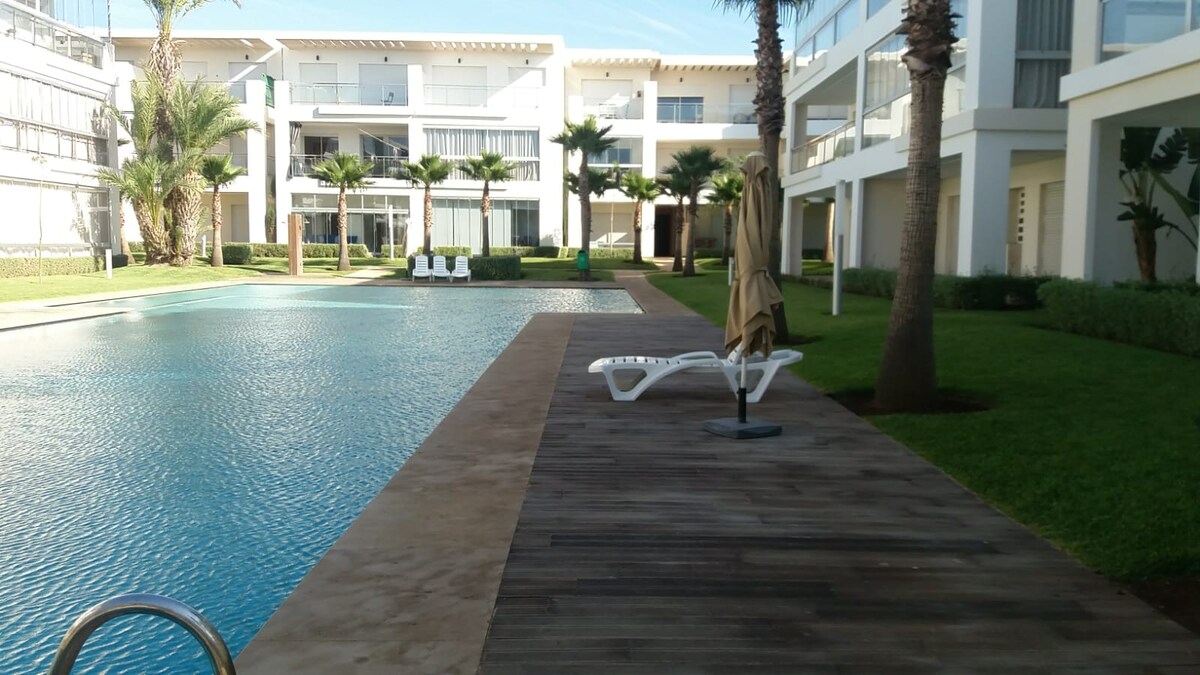 Somptueux luxe appartement à Résidence Costa Blanca, Tamaris! - Profitez d’un cadre moderne et paisible, à proximité de la plage et à 15 min de Casablanca. Résidence sécurisée avec piscine, parking privé et espaces verts. - Idéal pour vos séjours détente ou prolongés. L’appartement offre 2 chambres confortables, un salon lumineux avec terrasse, et une cuisine équipée. - Commerces et activités proches pour une expérience unique. RÉSERVEZ DÈS MAINTENANT et découvrez Tamaris en toute sérénité !