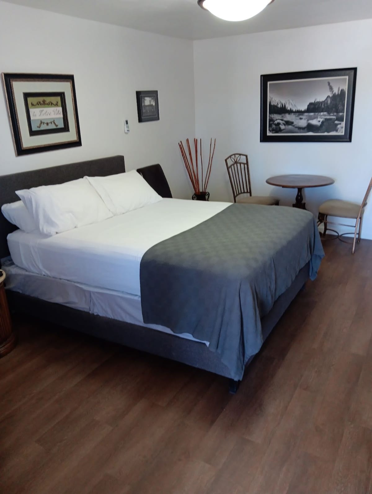 Welcome to our retreat in transformation. Situated close to Kings Canyon National Park, this room is a harmonious blend of comfort and tranquility. Enjoy the restful sleep on a king-sized bed and refresh yourself with a hot shower. Whether you choose to explore the stunning landscapes or simply savor the serenity of our location, we aim to make your stay special with personal touches that create a home away from home. Rejuvenate as you connect with nature, birds, frogs, cats etc. at our haven