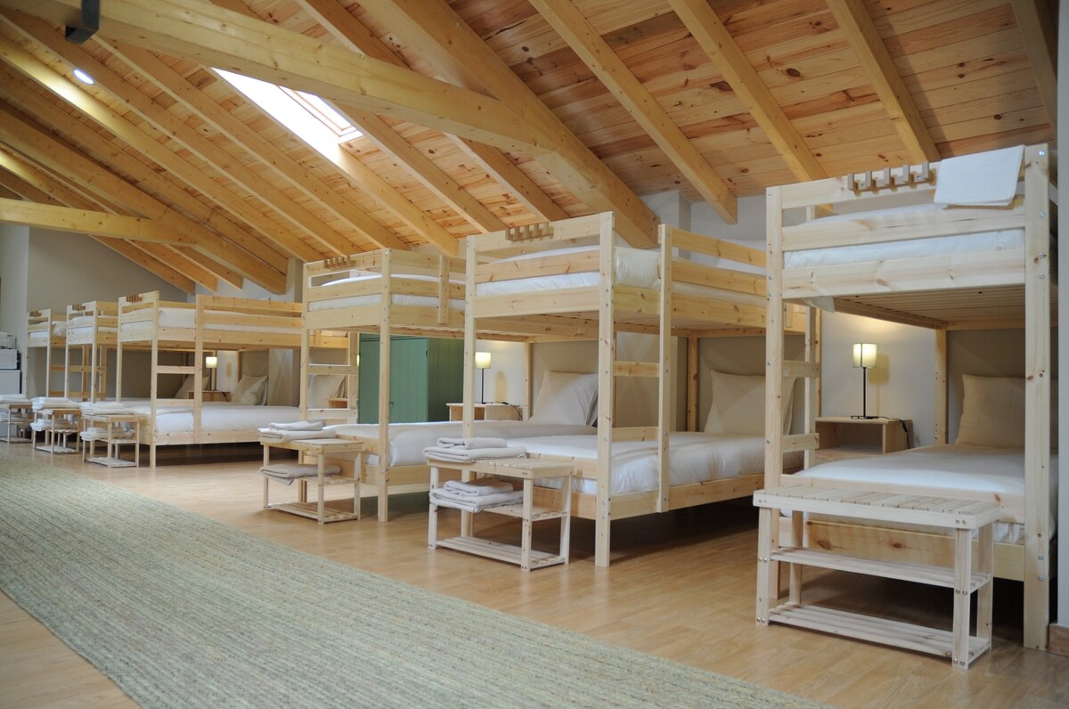 The rural space, with independent access, enjoys one of the best views of the Tiétar Valley. Built with stone, wood and sustainable materials, it features functional and cozy decor with a capacity for 24 people. It is designed to accommodate groups. Athletes, hikers passing through, school groups who want to experience life in nature, a large family or a group of friends who want to spend time together.