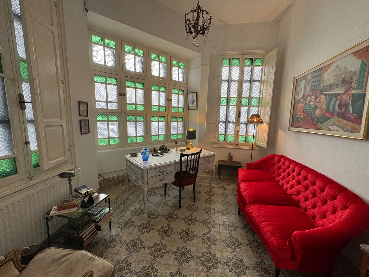 Simplify your life in this peaceful and central accommodation. Historic house, nestled in the heart of the Medina of Tunis, in front of the Torbet El Bey mausoleum, it is the ideal place to admire, from the top of the terrace, the domes, the majority of which are covered with green tiles in the shape of scales and dominating the ocher sandstone facades adorned with pilasters and light stone entablatures in Italian style.