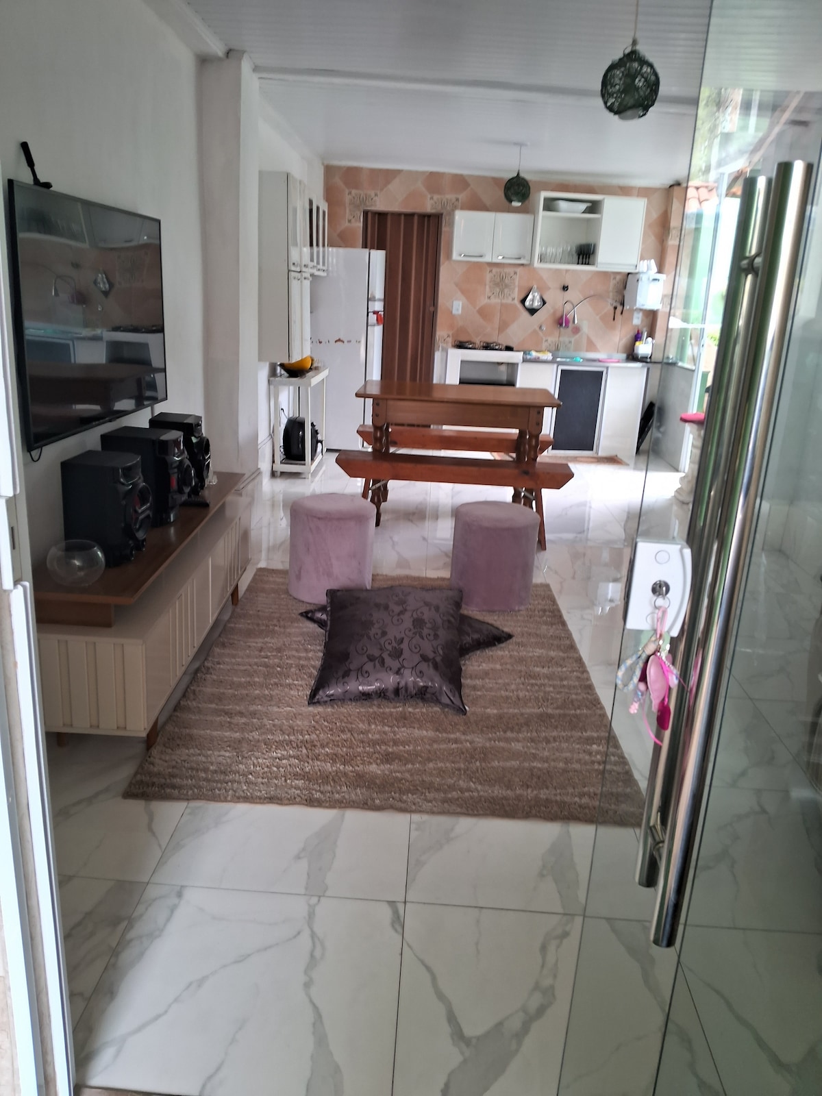 This stylish home is perfect for group travel. The house is located in a residential neighborhood near the center of Camaçari, close to the city's main points: hospital, supermarket, pharmacy, UPA, college, Bouleva shopping mall, easy access via screw, 25 km from Salvador airport, 2.5 km from the industrial hub ideal for those coming for work, and 18 km to the Camaçari waterfront.