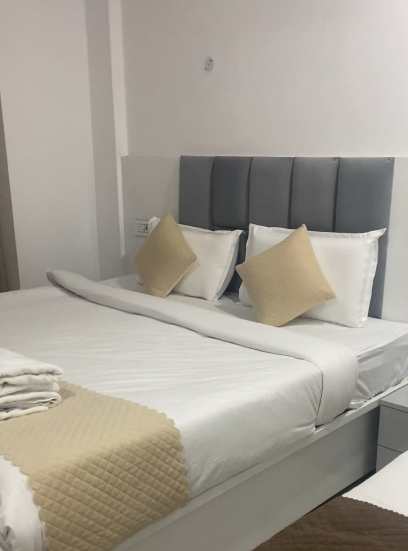 on the first floor, two bed rooms are available with king size bed and attached washroom with balcony.Huge living room with reading corner.Fully operational kitchen,seating dinning table, all daily need items are available in the kitchen at no extra cost and dining room.Two rooms are also available on need at the ground floor with balcony and have separate entry. Two washroom are at the ground floor on sharing base ( with family only).