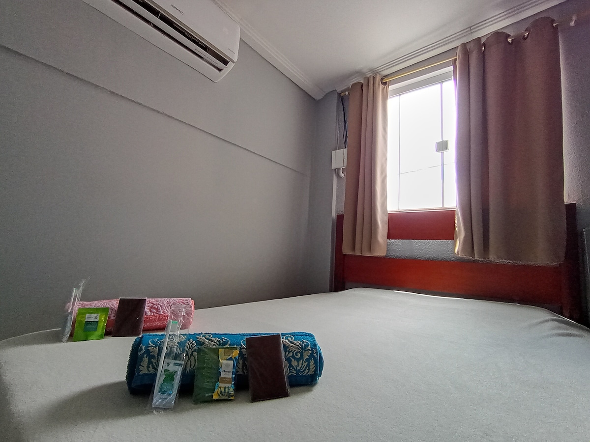 Lugar espaçoso, móveis novos, localizado no centro da cidade, próximo ao melhor supermercado, restaurantes, posto de combustível, conveniência, farmácia e muito mais. Possui uma Suíte e um quarto ambos c/ar-condicionado split e enxovais completos. Banheiro social, cozinha equipada c/ utensílios domésticos, produtos de limpeza, sala confortável com smart TV 42’, Wi-Fi, área externa p lavar roupas e garagem para dois carros com câmera de segurança.
