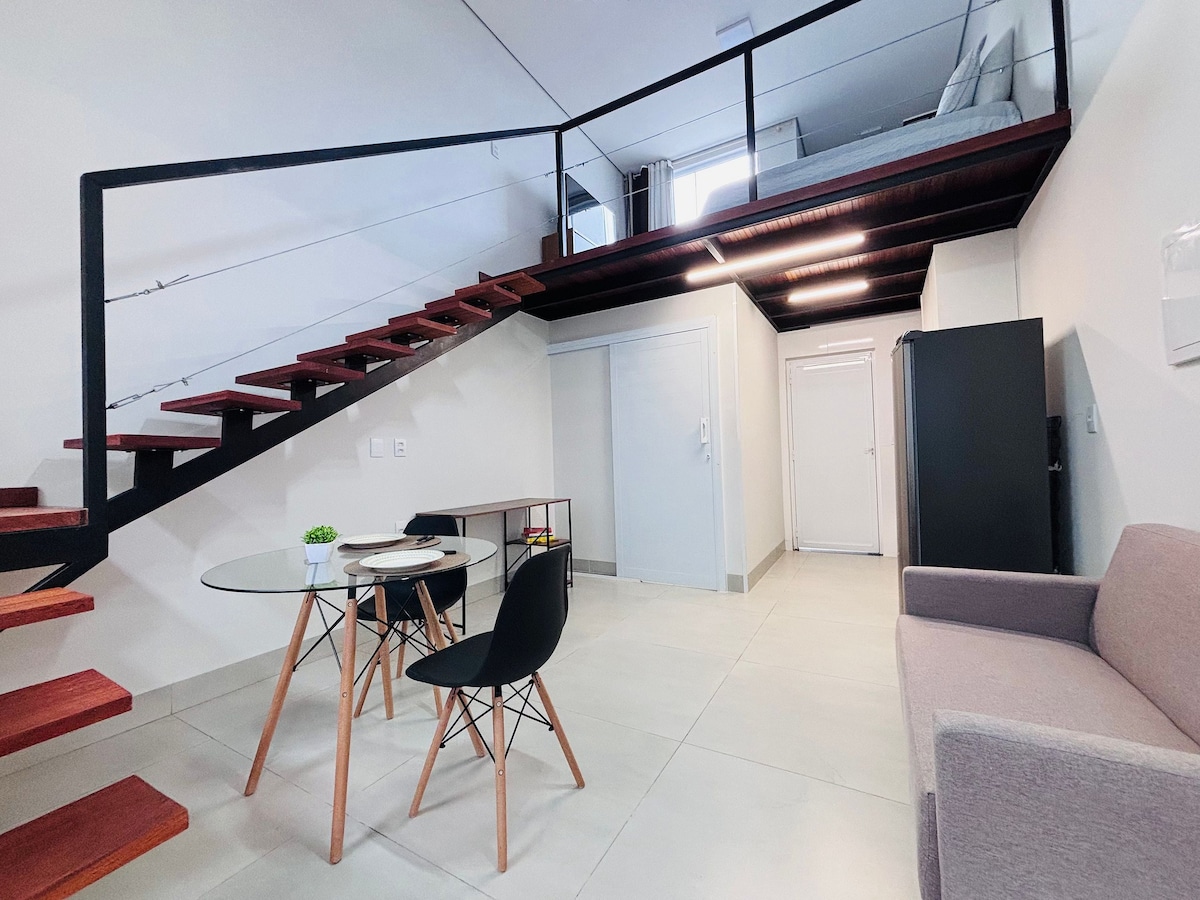 Relax in this unique and quiet place, a beautiful Loft in Sinop in the central region. Our apartment has a double bed, equipped kitchen, air conditioning, Wi-Fi, Alexa, high-quality bathroom, bath towels and blankets. We also provide a mattress for children if needed. Our apartment is well located and has restaurants, markets and the Botanical Garden park nearby, close to the Teles Pires River and the Norte Show fair.