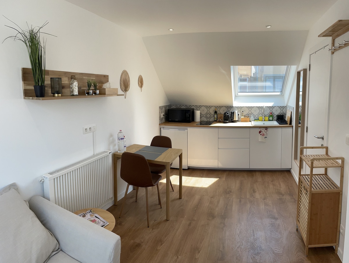 Studio in a nice villa with backyard and organic garden. Separate entrance leads to a living room with microwave oven, a private toilet and a little bathroom Nice and very bright space first floor with mezzanine bed (double bed) and also a single bed. In a rural area 20 minutes by train to the center of Brussels. Other public transport nearby. Trailheads to the countryside and woods.