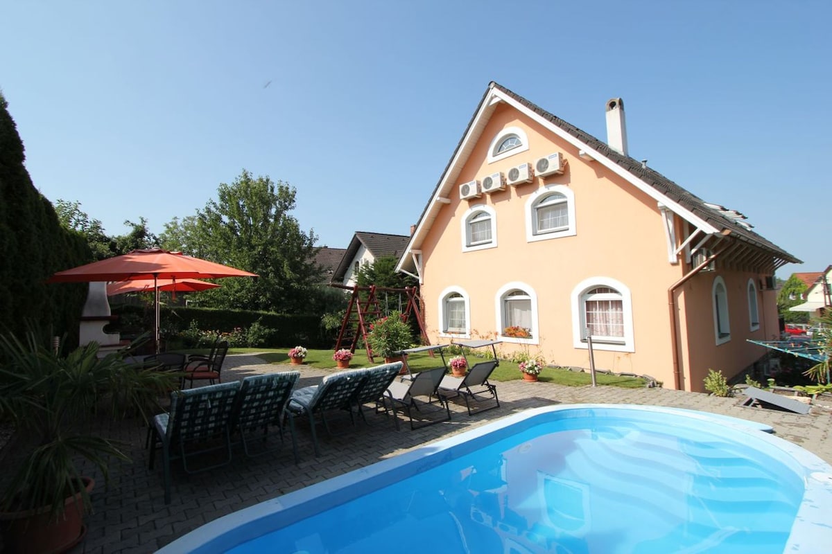 Our family, cozy, air-conditioned, fully equipped cottage operates as part of our family home. Breakfast can be arranged from a local grocery store (150m) or in our family restaurant (100m) where we provide a 15% discount on their consumption. We treat our guests with a Nespresso coffee machine and capsules. It is possible to rent a bicycle in the bicycle rental on the street. The courtyard is a common area if the other apartment is also rented. Superhost status. We look forward to your visit, Zoltán and family
