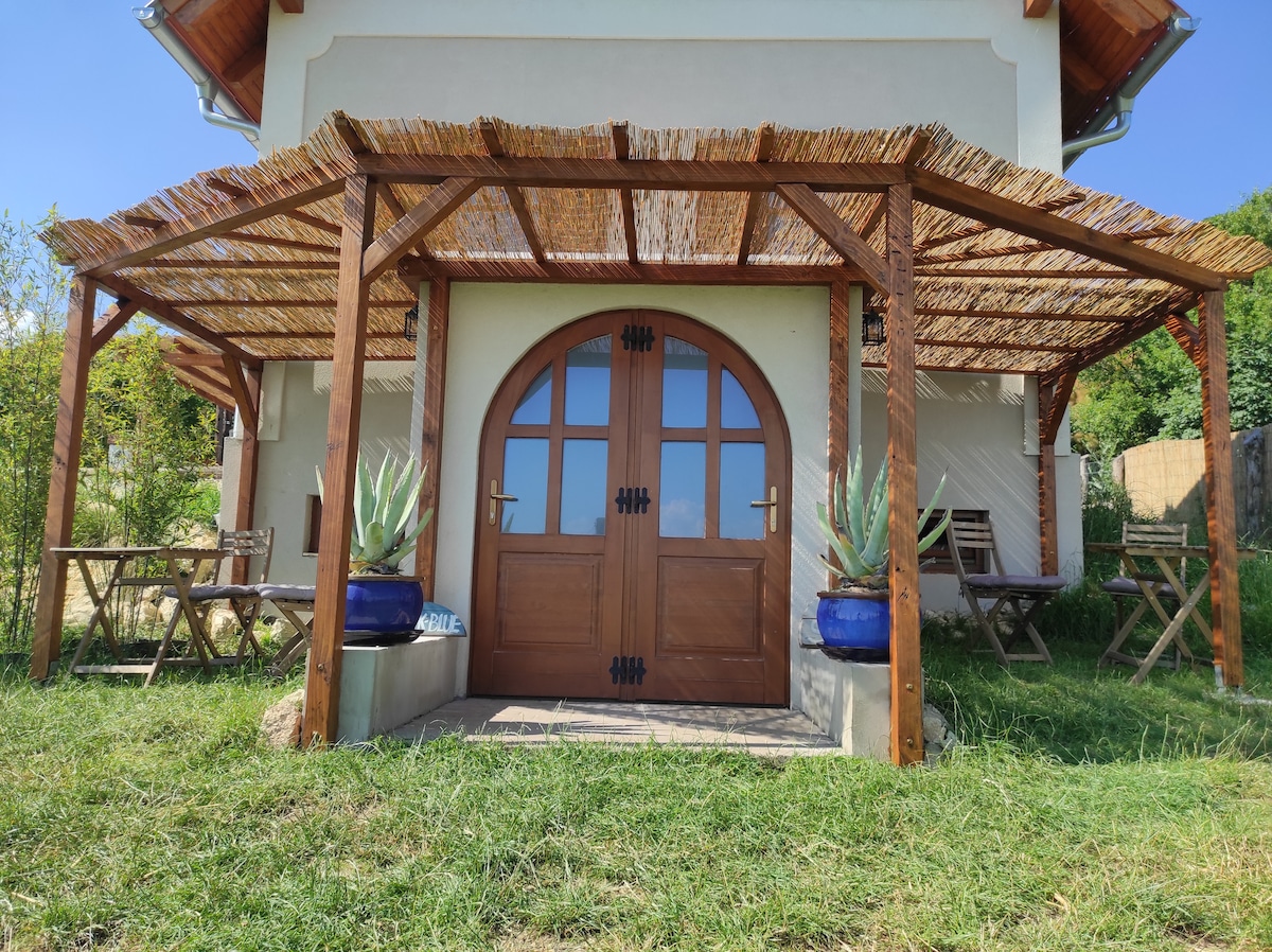The house is located in the Nivegy Valley, surrounded by vineyards, 7 km away from Lake Balaton. It offers a beautiful view of the Nivegy Valley, Hegyestű, Badacsony. The house comes with a 35 m2 terrace equipped with a 6m2 sunshade. Parking is possible in the garden belonging to the house. Inside the house, you'll find a refrigerator, electric stove, Lavazza coffee maker (with complimentary capsules), toaster, kettle, air conditioning, and unlimited WiFi.