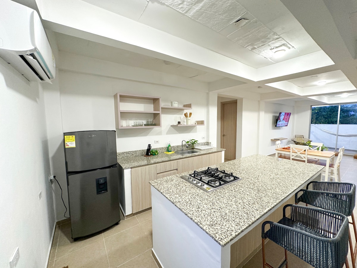 Escape to a villa with a private pool, a haven surrounded by nature and comfort. Enjoy a unique experience in its loft-like atmosphere, with a king-size bed, bathroom with views of the sky, and outdoor shower under the stars. Enjoy its Mediterranean cuisine, ideal for sharing special moments. The courtyard with vegetation and warm lighting creates a magical atmosphere for relaxation, just 25 minutes from Barranquilla.