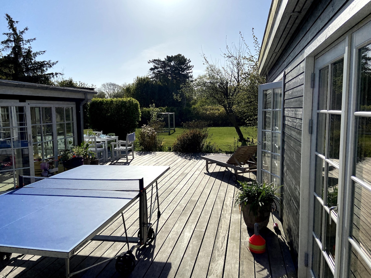 This luxury summer house from 2004 (125 m2) in the popular but quiet seaside resort of Rågeleje is located peacefully on a large site (1.900 m2) with panorama view to nature. Lots of birds can be seen from the house. The beach of Rågeleje and Vejby Strand is less than 2 km away and so is the famous nature reserve Heather Hill. The house is fully equipped, well insulated and heated and has a large terrace facing south. Ideal for two families with children or groups of four-five couples.