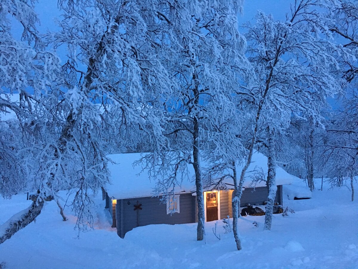 Mysig stuga med vacker utsikt nära trädgränsen