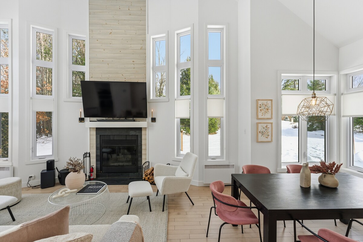 Mont-Tremblant chalet, Scandinavian style. Large windows, natural light, and plenty of natural light. 3 magnificent bedrooms, 2.5 bathrooms, spa, gas fireplace, outdoor fireplace (except in winter), BBQ, and access to the Devil's River on the property. Welcome gift at your arrival:) Tremblant: activities, bars, restaurants with family, or friends. Moutai bike trails and just minutes from the old village and the Tremblant resort. No pets, thank you. Fast Wi-Fi, espresso machine. Citq317056
