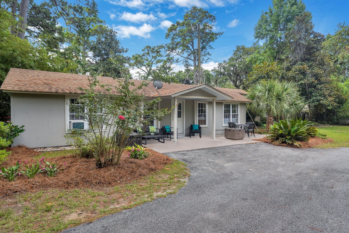 Amazing Location! This home sits in between Tybee Island and Savannah's Historic Downtown. A 10 minute drive to River Street and 15 minute drive to Tybee Island. This is the perfect home for families or couples wanting to visit the Wildlife Center located just 3 minutes away! Cozy hot tub and firepit, Beach chairs and towels, plush beds with luxurious linens, a fully stocked kitchen, and all the things you need to make a vacation complete are waiting for you.