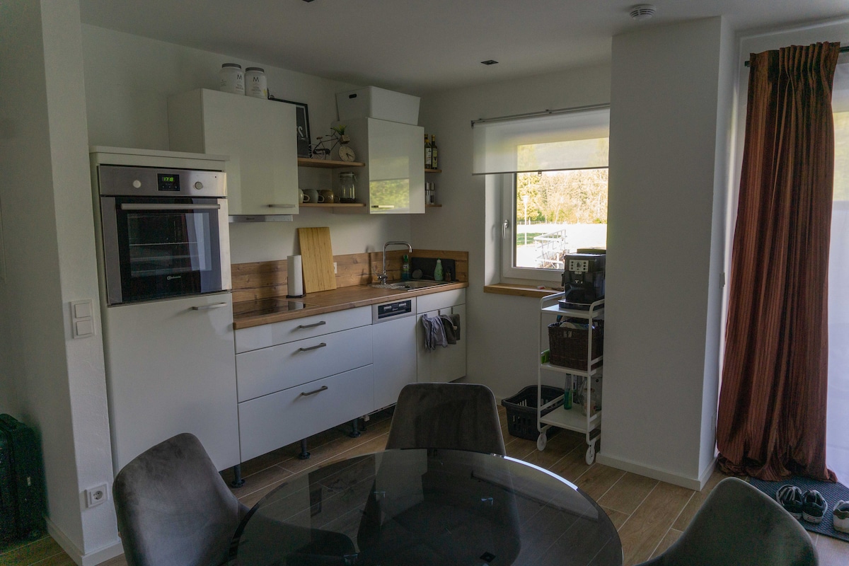 Would you like to spend some relaxing days in nature and the mountains? Then my apartment is just right - it is located in the middle of nature (1.2 km to the town center) with a stream right outside the door! From here you can start directly for hiking, biking or other outdoor activities. Modern furnishings, fully equipped kitchen and fiber optic internet invite you to relax or work in the apartment. Click through the pictures, I look forward to your message!