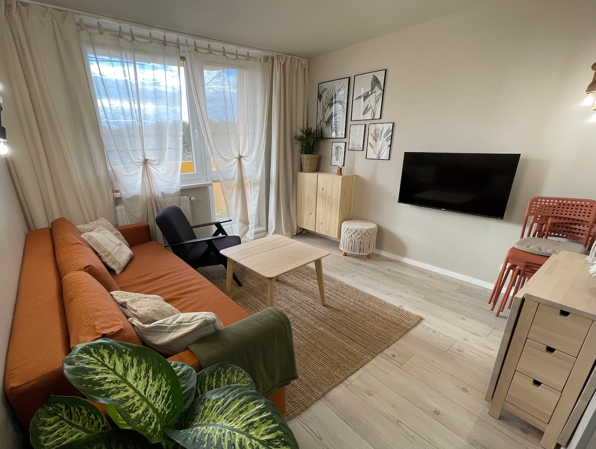 Cosy flat, fully furnished in quiet area with beautiful view, near the city center, next to the river. 4th floor with elevator. 5 minute walk to the nearest grocery, restaurant, shops. Excellent location for holidays: mountain hiking in Malé Karpaty; cycling (numerous paths to the country side); swimming in local lake. City of Brezová pod Bradlom (Košariská) is known also as a birthplace of the greatest Slovak – M. R. Štefánik, whose exceptional monument is located 3 kilometres from the flat.
