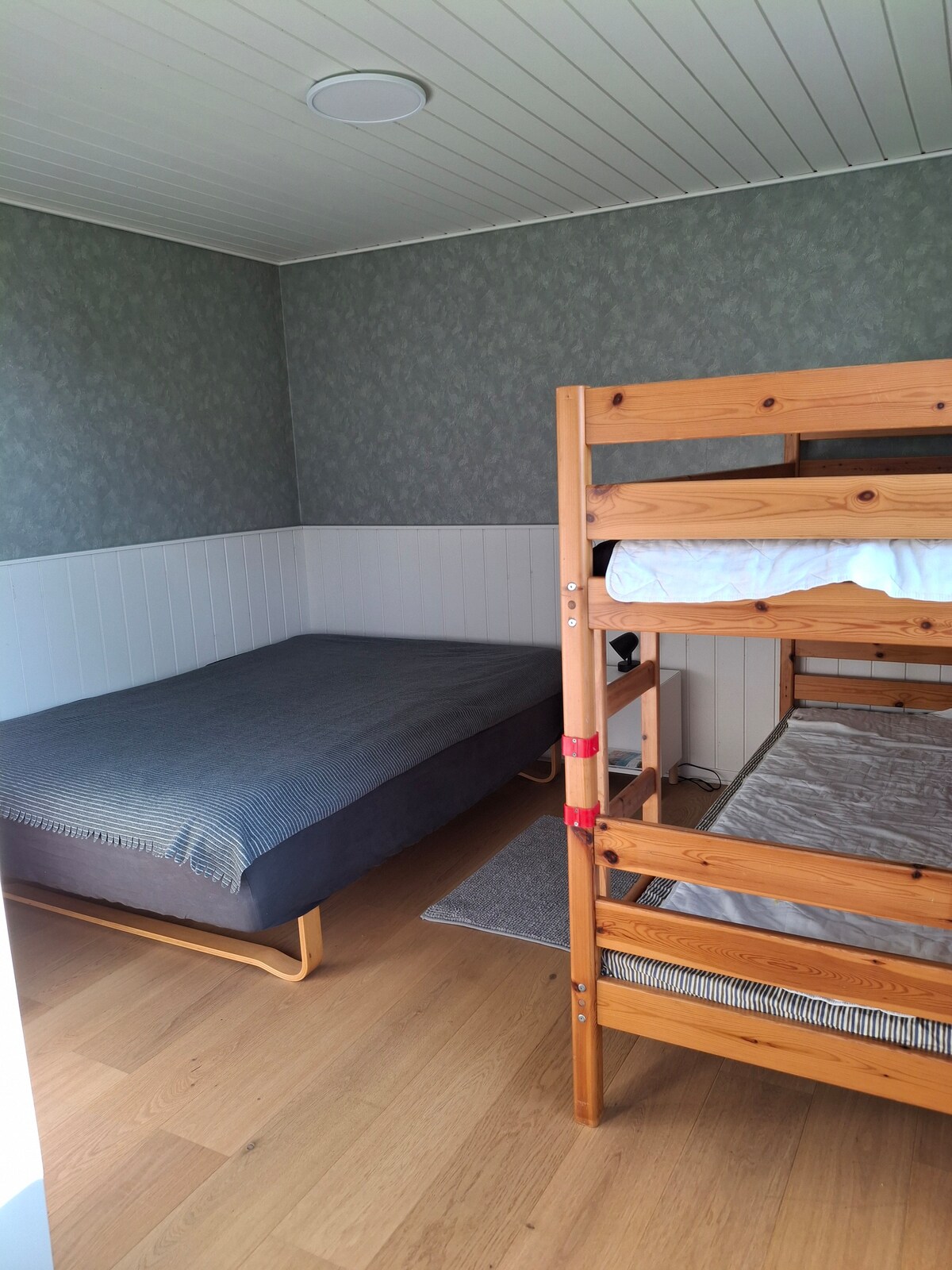 3 sleeping rooms (1 db. + 2×2 bunk beds (not made for XL-adults), 1 living room, pets allowed (no extra fee), laundry, dishwasher, 23" TV, Chromecast, WiFi, heat pump, wood stove, in-/outdoor shower, gas grill, fireplace, shelter, 1 table chair. Two terraces with furniture Golfcourt 3 km, beach 1 km, big beach + supermarket 2,5 km. Suitable for families with children. See www-destinationhimmerland-dk ELECTRICITY/WATER INCLUDED. PLEASE ACT RESPONSIBLY. REDUCE YOUR CONSUMPTION. NO E-CAR CHARGING.