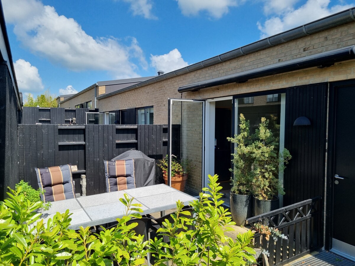 Løgten is located in a beautiful natural area close to the beach, fields and forest. There is free parking in the driveway and a private entrance with a key box for your own apartment and terrace in the garden. 4-5 minutes walk to the bus and 10 minutes to the light rail to Aarhus, where you can take route L1 and be in the center of Aarhus in 15 minutes. - The Djursland highway is only a 3-minute drive away. - 2-5 minutes walk to Q8 or Netto and SuperBrugsen. Price + cleaning 75