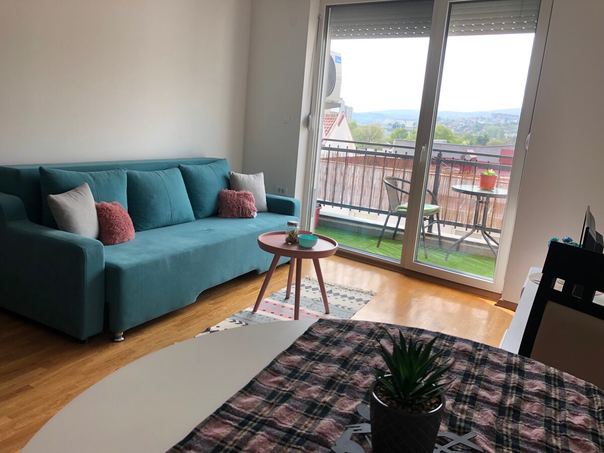 The apartment is located 10 minutes on foot to the strict center in Skopje. Near the apartment there are Ramstore Mall and a bus stop. This apartments is 35 m2, in the common area there is a large double bed and sofa bed. Has AC, brand new kitchen, living room with LCD screen, one balcony, and one bathroom. It is located on a quiet street near the center of Skopje. You won't have to spend a minute in public transport! All the important places in the city are within a 10 min walk.
