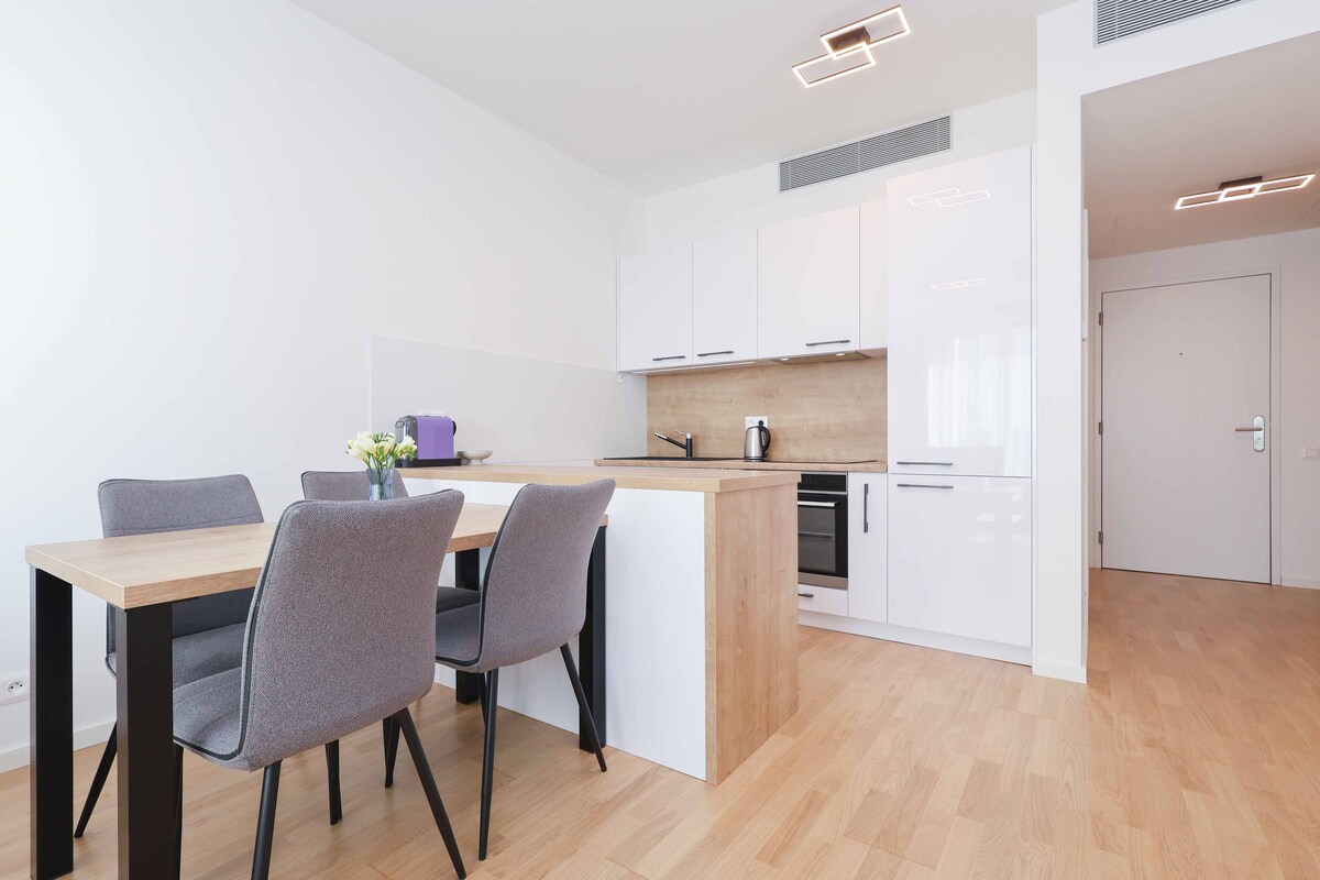 New, modern and cozy apartment in the centre of Bratislava. The residence is two minutes from the Eurovea Shopping Gallery, the Danube River with its beautiful promenade, restaurants and cafés, and from the new Slovak National Theatre. The building itself has one of the best grocery stores with fresh local products. The old town with all the important sights is a ten minute walk away.