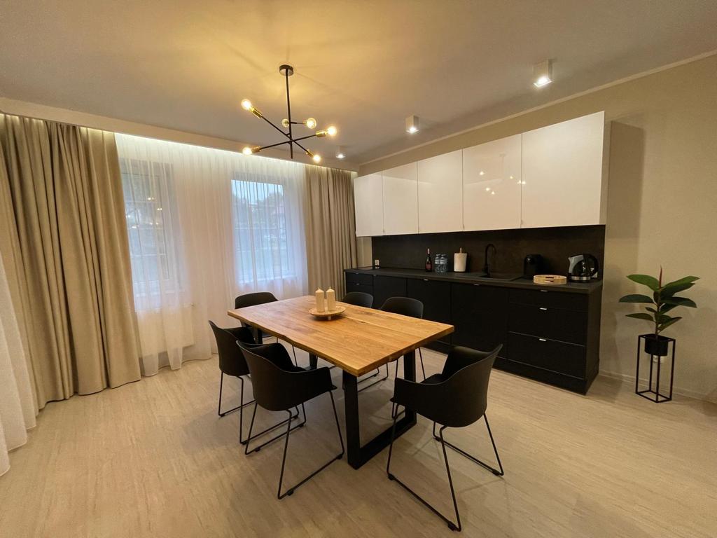 A stylish apartment in the heart of Kołobrzeg is designed for a maximum of 6 people. On an area of approx. 95m², there is a kitchen with a dining room open to the living room. A seating area with a 75-inch smart TV and a sofa bed. Two lockable bedrooms provide great comfort. In the master bedroom there is a double bed measuring 160x200cm and a dressing table with a mirror. In the second bedroom, there are two single beds 90x200cm. Both bedrooms have access to the balcony.