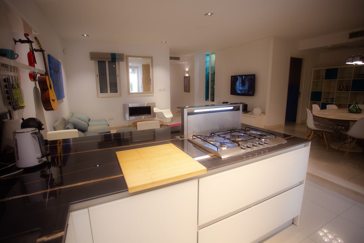 Beautiful Recently Renovated 1-bedroom Traditional Lime Stone Open Space Apartment with Modern Conveniences in Sliema with Valletta View and distant Sea View. Conveniently located on the border of Sliema/St. Julians/Gzira. Short walking distance to many bars, restaurants and beaches. Romantic bedroom with Super King size bed, huge living room with unfold-able Queen-size sofa. Working Fireplace to turn cooler months into cozy months, Rooftop hangout in summer!