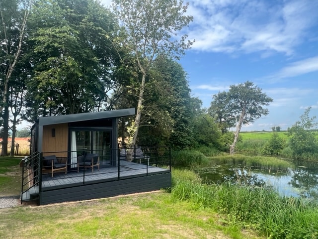 'Cherry' is one of four luxury glamping retreats set in the Shropshire countryside. Immerse yourself in nature, and enjoy peace and quiet on the extensive decking overlooking a natural pool. Destress in your own private hot tub, relax on the outdoor seating, dine alfresco, and catch up with the latest TV shows with superfast Starlink WiFi. Cherry, complete with en suite bedroom with king-size bed, and open-plan lounge/kitchen, has been designed to offer luxury adult-only breaks.