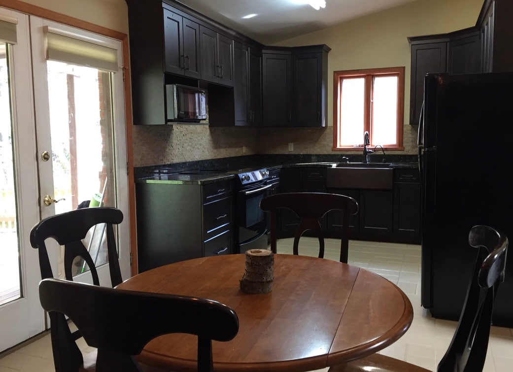 Enjoy comfort, character and space in a serene rural setting just 10 minutes from restaurants and services. The 3400 sq. ft. home features a gourmet kitchen, stone fireplace, 2 main floor bedrooms (4 bedrooms in total), 3 walk-in showers, and a lovely forest or meadow view from the yard and patio . You'll find all the details and amenities needed to insure your family reunion, wedding group, or getaway weekend is a memorable experience for all. It is time to book your rustic chic retreat!