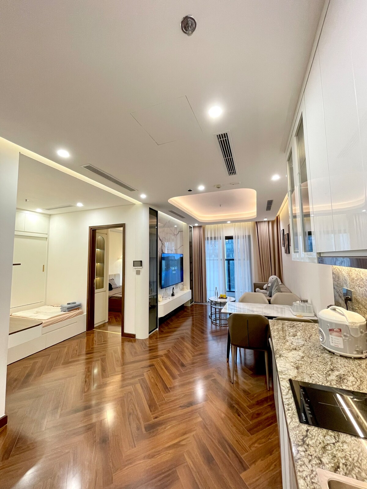 Haru Room is a 2-bedroom apartment (1-2 guests will only use 1 master bedroom, lock the small bedroom) located in Hoang Huy Commerce apartment opposite Aeon mall Hai Phong, surrounded by hospital facilities, supermarkets, cafes,... 1. Prime location: - 10 minutes to the central Opera House - 7 minutes from Hai Phong Station - 30 minutes from Do Son Beach With a warm space and full of amenities, ideal for business travelers/trips of couples, families - groups of 2-4 people IG: ann.homestay