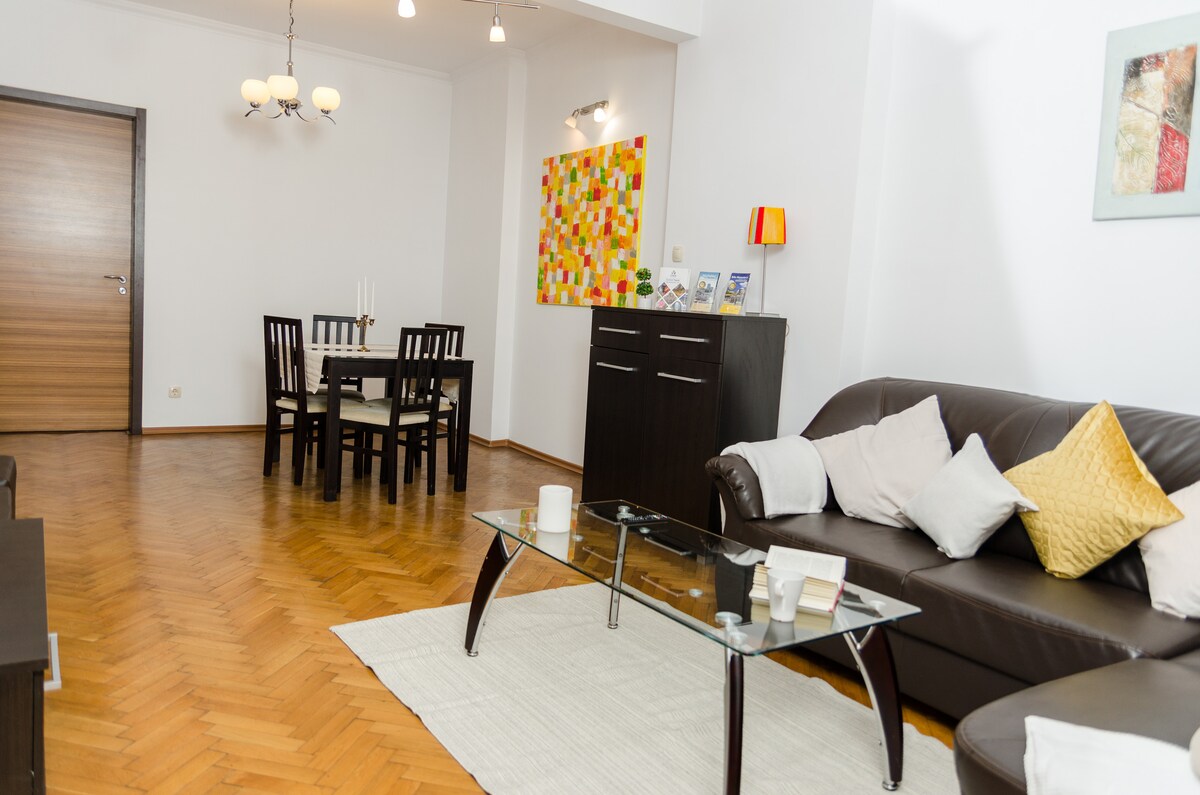 Silhouette Apartment offers a perfect blend of centrality and tranquility, overlooking the quiet backyard while being located in Sofia’s business and cultural hub. Major landmarks like the Council of Ministers, Presidency, and the Ancient Serdica Complex are right across the building. Enjoy a peaceful stay with easy access to Sofia’s top attractions, restaurants, and cultural sites.